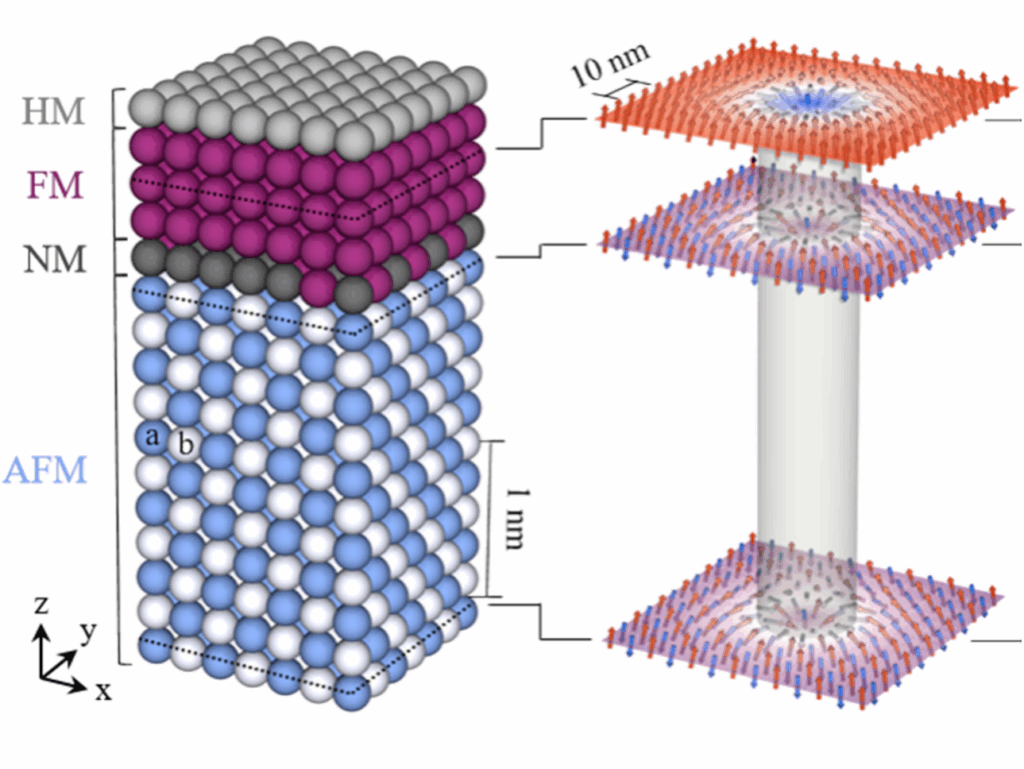 In this work, a consortium of physicists from SPINTEC and York addressed the challenge of nucleating quantitatively proven topological magnetic textures in compensated magnets with zero net magnetization. It paves the way for extending the study of topological spin textures beyond ferromagnets, into materials with intriguing electrodynamic properties, such as antiferromagnets and altermagnets.